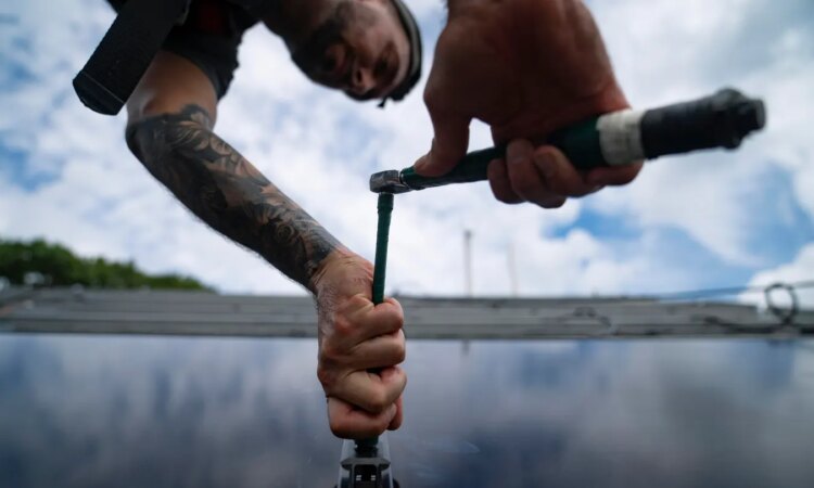 FILE – An employee of NY State Solar, a residential and commercial photovoltaic systems company. A new report has found that clean energy now provides more employment than the fossil fuel industry, reflecting the shift that efforts to tackle climate change are having on the global jobs market. (AP Photo/John Minchillo, File)