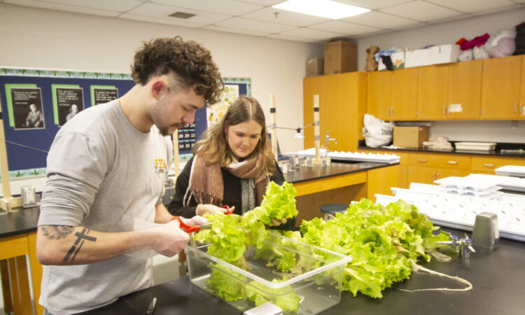 Peltin spoke as he worked with lettuce the class had harvested from a Flex Farm hydroponic wall, but agricultural science is about far more than growing vegetables.