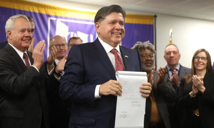 “This was one of the most comprehensive responses to the energy crisis that we’re in in the entire nation because it was important to us,” the governor said during a ceremony at Joliet Junior College, flanked by a group of Illinois lawmakers and the law’s advocates. “There’s no time to waste in the race to make electric bills more affordable.”