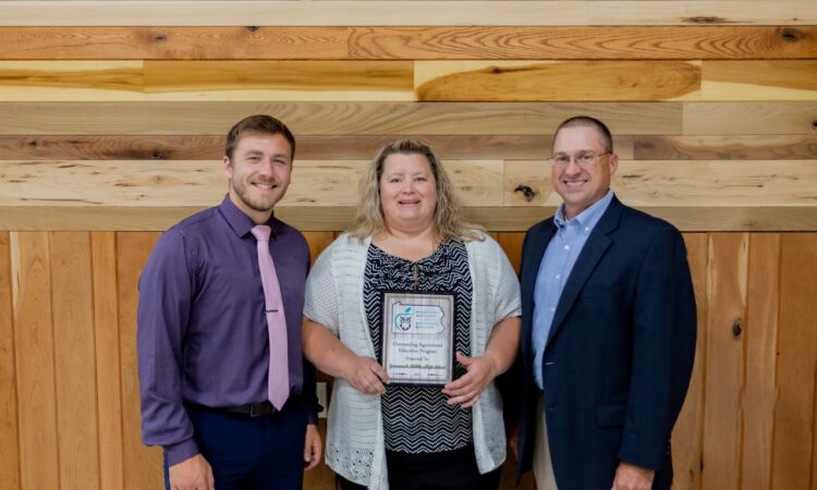 PROGRAM PRAISED — Nate Moyer, Krista Pontius and Mike Clark (from left), agriculture teachers at Greenwood School District, accepted recognition of Greenwood’s agricultural education program at the state level. The Greenwood program was named the 2025 Outstanding Agricultural Education Program, while Clark also earned individual honors, receiving the National Association of Agricultural Educators Outstanding Agriculture Education Teacher of the Year award.Perry County Times