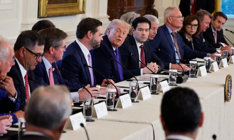 WASHINGTON, DC – JANUARY 09: U.S. President Donald Trump (C) speaks during a meeting with oil and gas executives in the East Room of the White House on January 9, 2026 in Washington, DC. Trump is holding the meeting to discuss plans for investment in Venezuela after ousting its leader Nicolás Maduro. (Photo by Chip Somodevilla/Getty Images)
