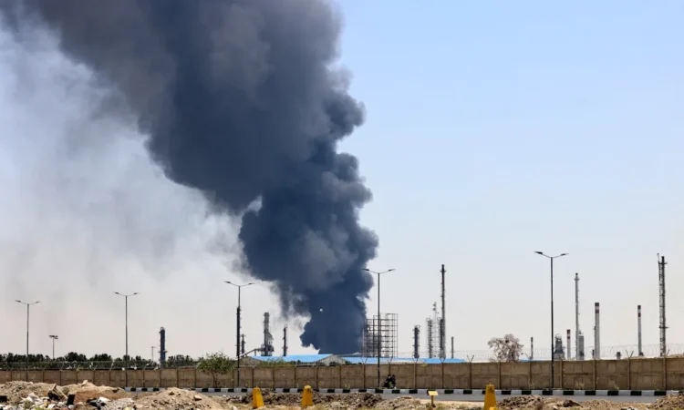 A plume of heavy smoke and fire rise over an oil refinery in southern Tehran, after it was hit in an overnight Israeli strike, on June 15, 2025. Iran fired a fresh barrage of missiles at Israel, state television announced early on June 15, as the rivals exchanged fire for a third day. (Photo by ATTA KENARE / AFP) (Photo by ATTA KENARE/AFP via Getty Images)