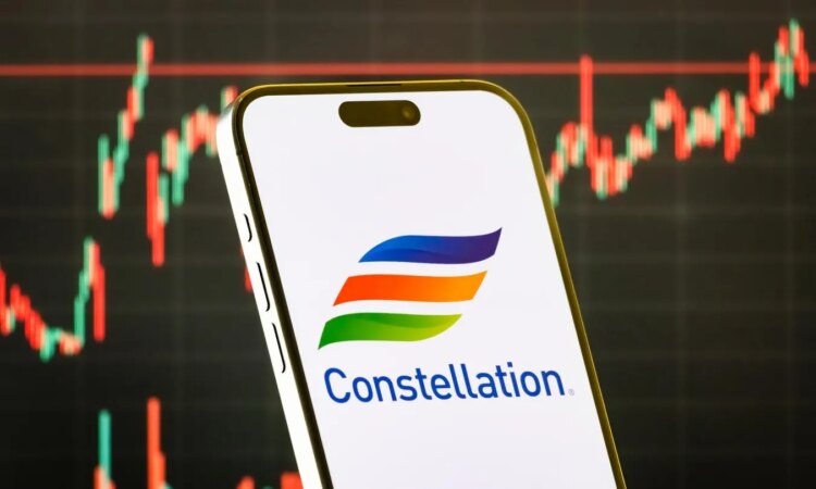 In this photo illustration, a smartphone displays the logo of Constellation Energy Corporation (NASDAQ: CEG). (Photo illustration by Cheng Xin/Getty Images)