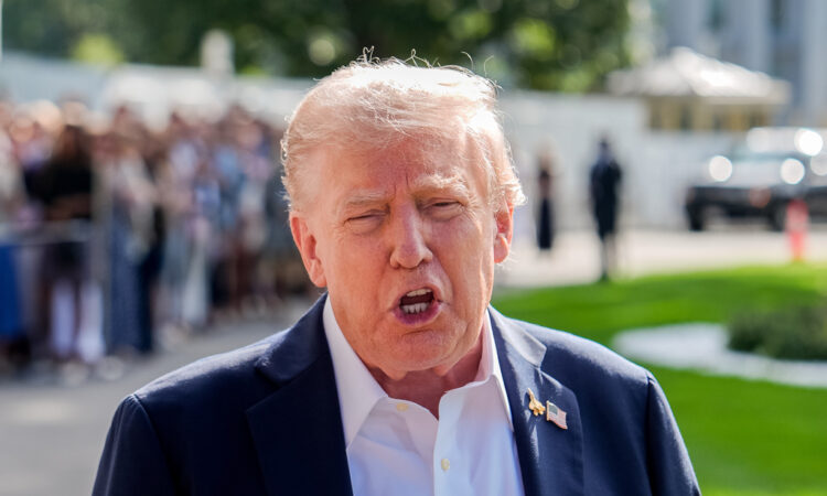 President Donald Trump speaks to reporters before departing the White House, Friday, Sept. 26, 2025, in Washington. (AP Photo/Julia Demaree Nikhinson)