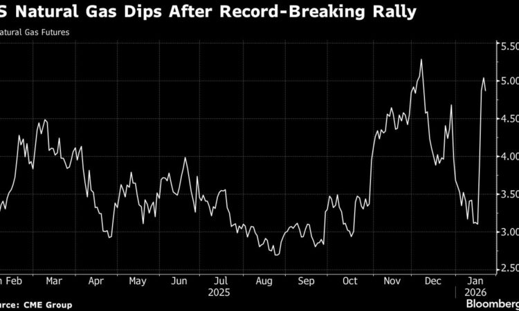 (Bloomberg) — US natural gas futures pared a record breaking three-day rally, after traders finished exiting short positions and the market braced for a historic winter storm.